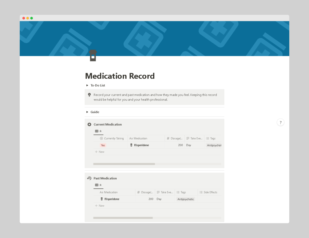 Notion also allows you to grant access to friends or your therapist if you want to involve them. Or if you are a therapist you could use this tracker with a client that has indicated that they prefer to record things digitally.